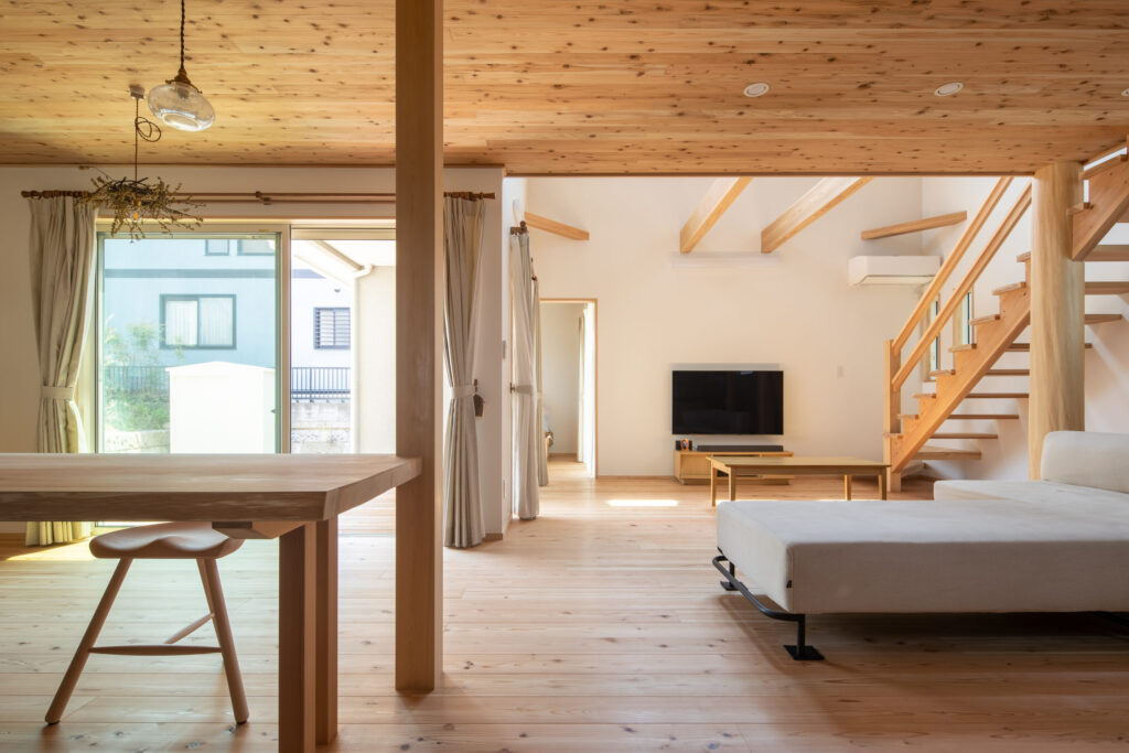 広めの土地が手に入ったので、そこを活かしてリビングスペースをゆったり作っています。