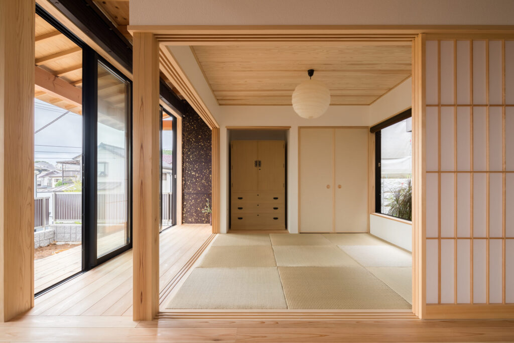 畳の間から眺められる中庭と